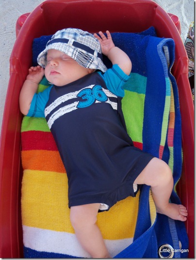 I don’t think Maddox is a sand lover…at least not right now. He doesn’t care for the ocean either! He gets it honest…Chris nor I love the sand or water. Chris loves the beach b/c of the fishing and I love the beach to just sit under an umbrella and read a good book or magazine, take a walk along the breakers and let the water hit my feet or just sleep!! (oh yeah…people watching is fun too)