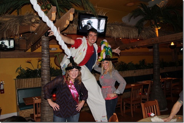 The guy on stilts made us some balloon hats since Emily was a Bachelorette and they told him it was my Birthday. (It was my Birthday Eve)