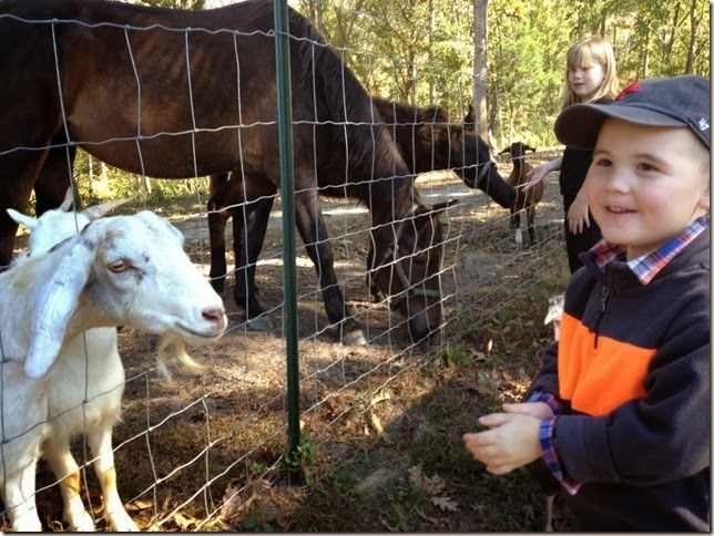 Ryder’s expression in this photo cracks me up….can you tell he wanted nothing to do with feeding the horse!!